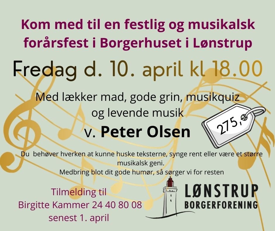 Vi afholder forårs fest i borgerhuset fredag den 10. april 2026.